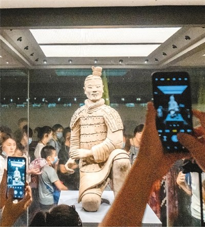 游客在陕西西安秦始皇兵马俑博物馆参观。 |