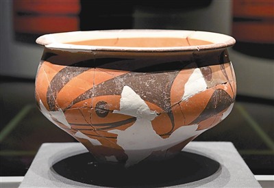 日前,位于河南省三门峡市的庙底沟仰韶文化博物馆正式对外开放,展出近4000件中原地区史前人类使用过的生产、生活用具等展品,生动展示了史前先民的生活图景。图为庙底沟仰韶文化博物馆内的单旋纹彩陶盆。 |