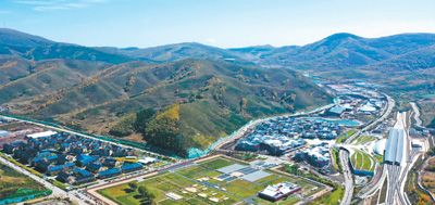 位于张家口的奥运村(左)、太子城冰雪小镇(中)和高铁太子城站。 |