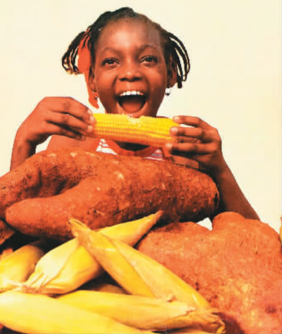 非洲人的传统主食——玉米与木薯。 |
