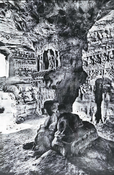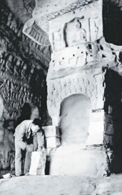 云冈石窟第1窟中心塔柱旧照。 |