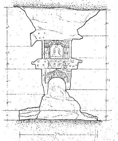 1960年进行维修时,工程人员绘制的第1窟中心塔柱南立面图。 |