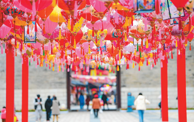 元宵佳节将至,江西省赣州市章贡区江南宋城历史文化街区处处张灯结彩,洋溢着浓浓喜庆的节日氛围。