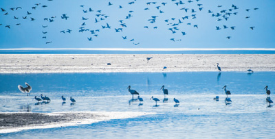 与长江水系相连的安徽铜陵缸窑湖湿地内,百鸟齐飞生态美。 |