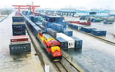 出口退税不断提速,推动外贸企业持续畅通资金链、强化产业链、提升服务链。图为2月22日,“柳州—莫斯科”跨境直通中欧班列从广西柳州南物流中心开出。 |