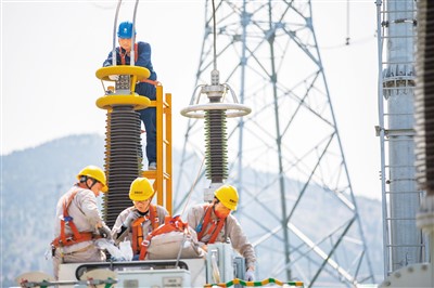 4月22日,电力施工人员在安徽省淮北市开渠220千伏变电站,对电网设备开展技术改造、综合检修消缺等作业,确保迎峰度夏期间能源可靠供给。 |
