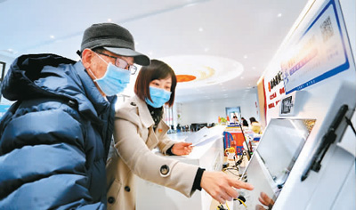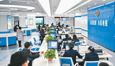 2月20日,在江西省赣州市南康区市民服务中心,税务工作人员给市民进行线上智能办税。 |