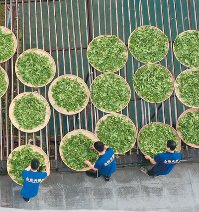 图为武夷山市星村镇仙凡茶厂工人在制茶。