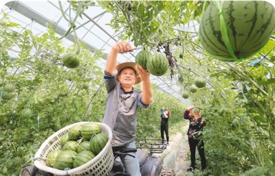 近日,浙江省湖州市德清县康乾街道新田家庭农场迎来丰收。该农场与浙江大学合作建立西瓜新品种产业化基地,利用西瓜大棚网架栽培技术种植“空中西瓜”,有效地提高了土地利用率和产出率。