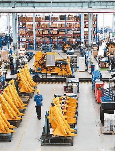 柳州是广西甘蔗的主要产区之一。近年来,广西柳工集团致力于推进甘蔗生产全程机械化产品研发与推广应用,产品在满足国内供应的同时,畅销中南美洲、东南亚等国际市场。图为工人在甘蔗收获机生产线上忙碌。