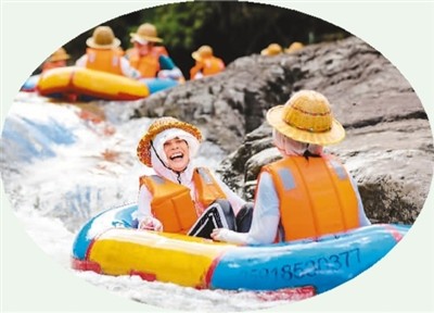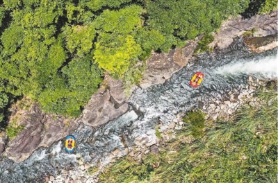 图为近日,游客在一都镇后溪漂流项目畅玩。