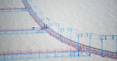 猫道,指的是为架设大桥主缆而铺设的空中施工通道,将贯穿整个悬索桥上部结构施工过程。