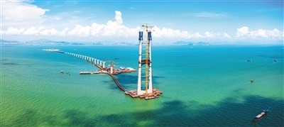 据环球网报道,在全海上搭建如此之高的大桥,中交二航局的建设者靠的是两大“神器”——“拼积木”和“空中移动工厂”。