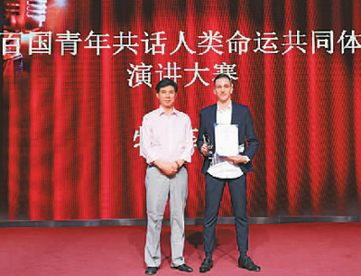 2019年6月,阿雷(右)在北京语言大学参加“讲好中国故事——百国青年共话人类命运共同体”主题演讲比赛,获特等奖。 |