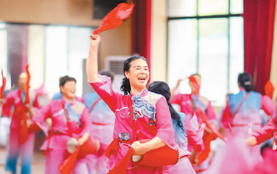 6月21日,江西省吉安市吉水县老年大学的学员正在打腰鼓。 |
