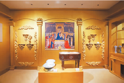 其中,口径长达56厘米的克拉克盘是迄今为止发现最大的明万历青花大盘。还有目前唯一存世带支架的18世纪欧洲教堂定制洗礼盆,有很高的学术价值和历史价值,堪称镇馆之宝。同时,83件欧洲定制的纹章瓷,凸显了景德镇在中国千百年来东西方贸易中的历史地位和重要贡献。另外,文艺复兴时期欧洲贵族将精美的景德镇陶瓷用金属镶嵌工艺进行二次加工的馆藏品,彰显了在中西文化深入交流和深度融合中,景德镇陶瓷起到的巨大作用。