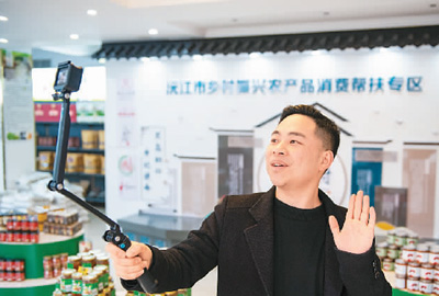 从湖南城市学院测绘工程专业毕业后,蒋连超投身乡村振兴大舞台。图为蒋连超在湖南省益阳市沅江高新技术产业园区录制短视频带货。 |