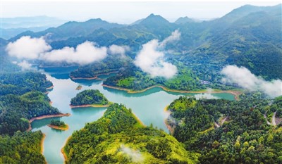 近年来,重庆市万盛经开区采取禁渔退捕、污水整治、水质监测等多种措施,使山更青、水更绿、环境更优美。图为该区丛林镇白龙湖晨雾缭绕,绿意盎然,宛如仙境。