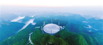 晨曦中的“中国天眼”全景。 |