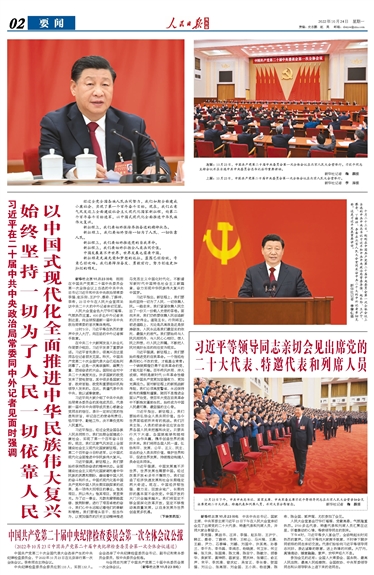 中国共产党第二十届中央纪律检查委员会第一次全体会议公报
