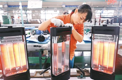 近期,广东佛山顺德部分家电企业针对市场变化,及时调整产品结构,灵活研发新产品适应海外市场的取暖需求。图为广东世联电器员工在检测电暖器。 |