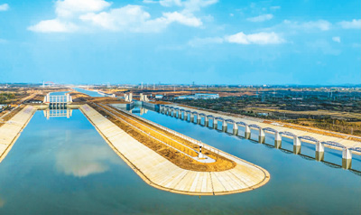 引江济淮工程是全国172项重大水利工程之一,也是安徽省基础设施建设“一号工程”。目前,引江济淮菜巢线桥梁、船闸等配套工程基本完工,试通航工作正在有序推进。工程建成后,供水范围涉及皖豫两省,其中包括安徽省13个市、46个县(市、区),惠及4000多万人。图为11月20日,安徽省合肥市庐江县万山镇境内的引江济淮工程庐江节制枢纽正在进行通航试运行试验。