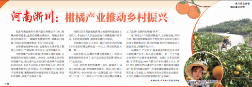 在“淅有山川”的品牌赋能下,北京新发地、郑州万邦、常州凌家塘等国内大型批发市场纷纷与淅川达成长期销售合作,淅川的柑橘、软籽石榴等成功入驻各类线上销售平台24个。