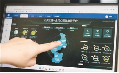 近年来,浙江省嘉兴市将老年人心理健康融入社会心理服务体系中,让老人们在家门口就能享受到线上线下心理筛查、评估、咨询、援助、干预等各项心理服务。图为9月27日,在嘉兴市秀洲区油车港镇党群服务中心,一名工作人员在秀洲区“心灵之秀—全民心理健康云平台”展示相关大数据。 |