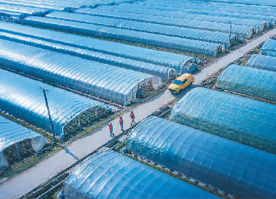 当前正值育苗关键时节,湖北省荆州市供电公司党员服务队对农业用电配电线路、设备巡视检查,排查用电隐患,助力乡村振兴。 图为供电公司人员在大棚检查用电设备。 王赵晶摄