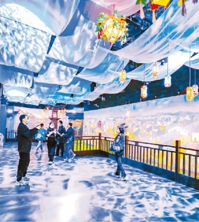 在浙江省杭州市淳安县千岛湖中心湖区旅游码头秀水街,游客正体验“千岛湖·梦之岛”乐园元宇宙概念项目。