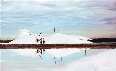 我能想象彼时的壮观场面:远处是浩瀚的大海,一望无垠;近处是一片片盐池,被海水围住,在阳光照射下不断析出结晶的盐,那些汗流浃背的晒盐工,脊背上闪烁着晶莹的汗珠。