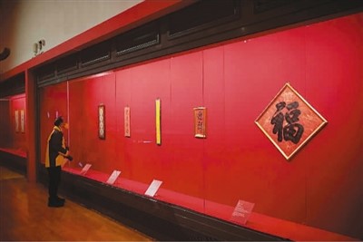 据介绍,展览还展示大众熟悉的年节用品,如福字、春联、门神等,也有清代宫廷独有的活动,如树立“天灯”“万寿灯”、明窗开笔等。