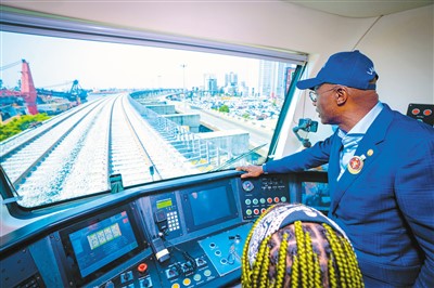 受邀嘉宾试乘城市轻轨列车。