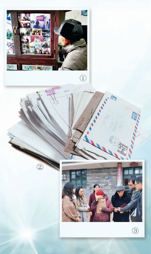 图①:台胞陈兰凤写给福建胞弟的15封家书由其亲属捐出。前不久,陈兰凤之子范植明循着信件线索,来到福建省浦城县的舅舅家。他看见橱柜上贴着母亲从台湾随信寄回的照片,感慨道:“这些信和照片,让我更深地理解了母亲的乡愁。” |