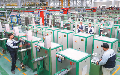 2022年12月15日,在位于埃及苏伊士省的中国巨石埃及玻璃纤维股份有限公司(巨石埃及公司),工人在玻璃纤维生产线上工作。 |
