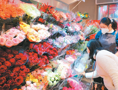 居民在广东省广州市一家盒马线下门店选购鲜花。 |