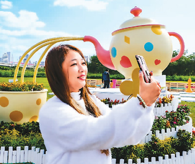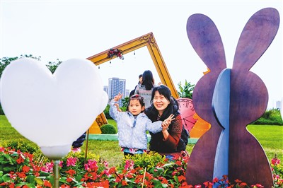 图为市民在公园内拍照留念。