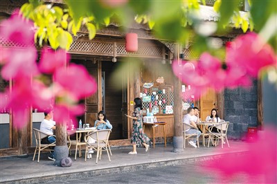 游客在福建省霞浦县三沙镇东壁村“拾间海”民宿休闲。 |