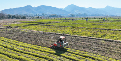 1月30日,湖南省常宁市洋泉镇杉树村村民驾驶农机翻耕农田。 |