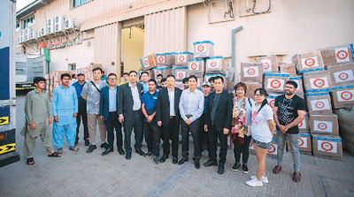 阿联酋迪拜龙城华侨华人总商会为叙利亚灾区募捐救援物资。 |