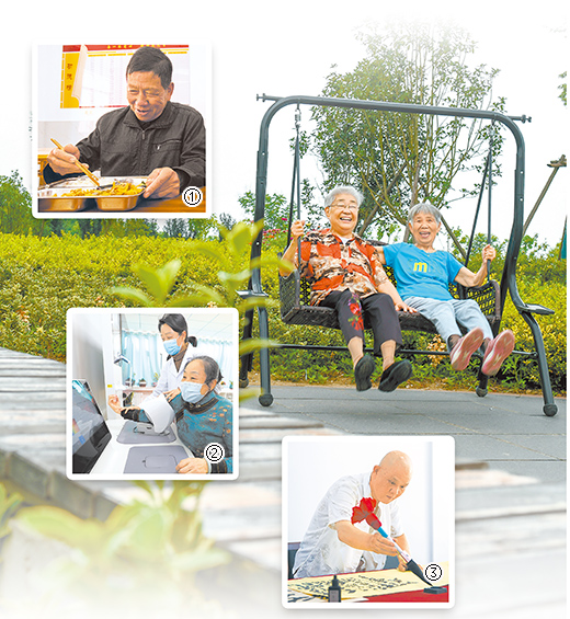 图①:一位老人在江西省吉安市吉水县尚贤乡华山村崇仁老年食堂里用餐。 |