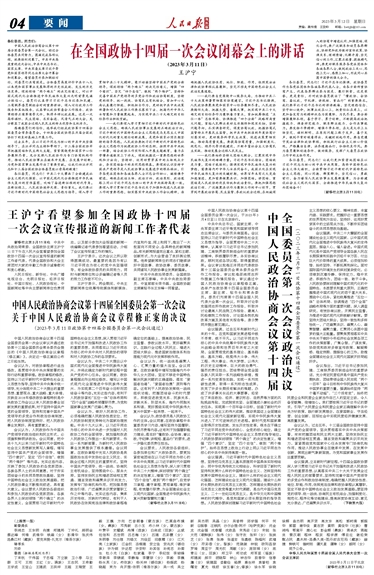 中国人民政治协商会议第十四届全国委员会第一次会议政治决议