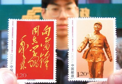 3月5日,中国邮政发行了一套名为《毛泽东“向雷锋同志学习”题词发表六十周年》的纪念邮票,其中一枚以金色雷锋塑像为主体图案。方寸间,雷锋昂首挺胸,面含微笑,仿佛正阔步走在春风中。他的神情欢快温暖,令人动容,让人怀念。