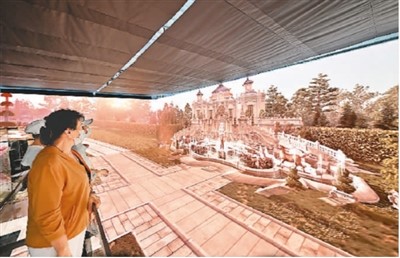 参观者在欣赏数字技术模拟的圆明园景象。 |
