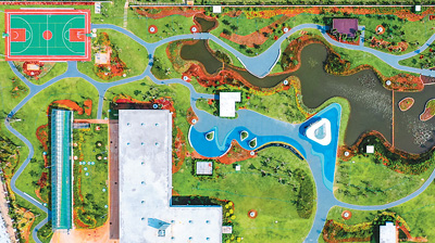 海南省海口市江东新区地埋式水质净化中心,地下是污水处理设施,地上是湿地公园。 |