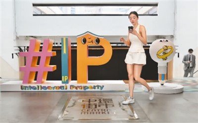 4月26日是世界知识产权日,香港特区政府知识产权署在中环街市举办“齐来保护知识产权”展览,设有打卡区等趣味活动,增强市民对知识产权的认知。图为展览现场。