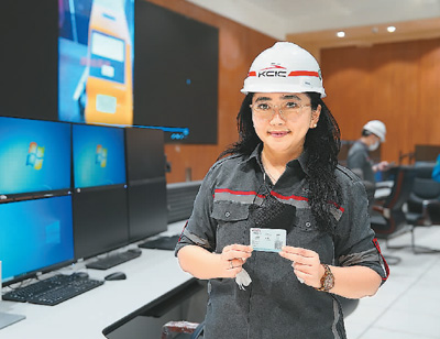 图为印尼中国高速铁路有限公司客票系统负责人莱尼展示印有自己名字的雅万高铁样票。