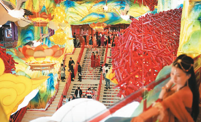 西安“长安十二时辰”主题街区人来人往,一派热闹景象。