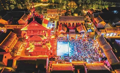 江苏省宿迁市宿城区积极探索消费新场景、新业态、新模式,通过举办夜经济主题活动、旅游节、购物节等,打造夜经济品牌,激发消费活力。图为游客在宿城区新盛街逛集市、享美食,感受古街魅力。