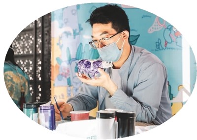 5月18日,国博文创体验活动参与者为陶瓷犀尊涂色。 |